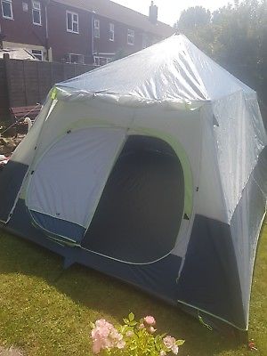 In used conditionBut looks like new..Comes with inner to separate into 2 roomsComes in original bagHas some pegs with itHere is some info i found online about it.Product DetailsThe Coleman Instant 10 Person Cabin Tent makes camping easy so that you can enjoy every moment of your outdoor adventure. With pre-asembled poles and a set up time of a minute, you are ready to go in no time! With ample living space, it has a spacious interior and is large enough to stand and move around in. If it rains, the included rainfly and WeatherTec™ system with its patented welded floors and inverted seams, helps you stay dry. Illumiline™ reflective guy lines are more visible at night so you don’t trip up if you need to take a walk in the dark. Two doors make for easy comings and goings, and a room divider provides extra privacy as you relax in a space large enough for up to four queen airbeds. When it’s time to head home, the cabin easily packs up into a carry bag with a rip strip until you’re off on your next adventure. This easy to set up 10 person tent, with protection and stability in all weathers, has been carefully designed at every stage to ensure your camping trip is hassle free!SpecificationWeatherTec™ System ensures campers remain protected and dry on the campsiteDouble thick rugged Polyguard 2X tent fabric prevents rips and tears2 Doors for entry from either side of the tentRoom divider for added privacyInterior has room for 4 queen airbedsPre-attached poles for a quick and simple setupIllumline reflective guy lines for greater visibility at nightCarry bag includedFlysheet: Polyester, 2000m PU coated, taped seamsGroundsheet: Strong and durable PEPoles: fibreglass, finished with polyester film for added strength and durability Set up: Instant, 2 peopleSleeping Area: 6.5m2Living Area: 6.5m2Pitching Surface: 13.57m2Capacity: 10 person Weight: 19kgMax Headroom: 193cmErected Dimensions: H 193 x W 426 x D 304 cm