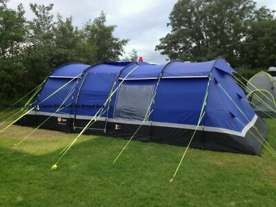 For sale is our Used twice 10 man tent with the footprint groundsheet and porch upgrade fantastic way to camp with 4 bedrooms and still enough space in the tent for a folding table table and chairs, then you have the porch extension perfect for keeping the tent kleen and dry on those wet days and great for cooking in too. comes in multiple bags so you will need room to transport it. but perfect for a family even has pockets inside for storage. 10 Berth Family Tunnel TentSewn-in groundsheetLarge living space has two ‘privacy’ windows and hanging storage pocketsWeight (g): 32200Pack Size (cm): 72 x 31 x 31(fly), 72 x 28 x 25(poles)With Ground sheet