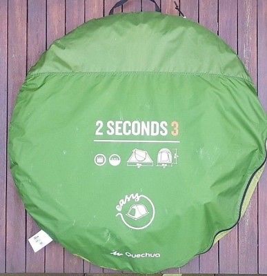 NEVER ERECTED.Bought for a camping trip I never did take. QUECHUA 2 SECONDS EASY III POP UP TENT 3 MAN GREEN CAMPING TRIPS HIKING FESTIVAL