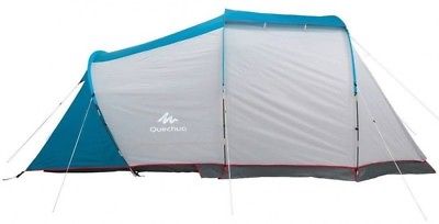 4 Person Pop Up Tent Folding Outdoor Camping Hiking Waterproof Tunnel Man Blue Designed for 4 people family camping who want a tent with a single bedroom and a high living room. This one-bedroom tent sleeps 4 and is easy to pitch. It features a tall living area with a basin groundsheet.Capacity High living room 5 m with groundsheet covering, bedroom 210 x 240 cm.Easy assembly / dismantling Simple installation: poles with colour coding.Heat reduction Lined roof above the living room to ventilate and limit condensation. Durability Resists wind up to 50km/h (Force 6):validated in wind tunnels on rotating plate.Easy transport Transport strapsCover 60 X 24 x 24 cm35 litresWeight: 9.8 kgWaterproof Tested in a shower at 200 mm water / hour / m (tropical rain) and field tests.Test Product QUECHUA tent waterproofing is approved for the whole tent under 200 litres of water/hour/sqm (200 mm of rain per hour) for 4 hours. The water column test (=mm schmerbers) only measures fabric waterproofing. Our test means we can prevent any water getting through the seams, flaps, openings, zips, etc. Wind resistance: We test all of our tents in a wind tunnel and on a rotating plate to expose each side of the tent to the wind. Tested in real conditions.Guarantee : 2 years. Repairs: All our tents can be repaired in the workshop4 Person Pop Up Tent Folding Outdoor Camping Hiking Waterproof Tunnel Man Blue Our Promise To You: If Your Not Delighted With Your Purchase Simply Return It. No Hassle, No Questions, No Quibble. We process orders as soon as we receive them to ensure purchases are received in the fastest time possible. Orders are processed 7 Days a week and shipped within 48 hrs. We really do appreciate you trusting us with your order. Connect with us via the eBay messenger system if you have any challenges and we promise to fix them. Condition: NewBerth: 4 PersonMain Colour: BlueBrand: QuechuaFeatures: Lantern Hook, Sun Canopy, WaterproofMPN: 71009Sleeping Areas: 1Style: TunnelEAN: 07436148071009