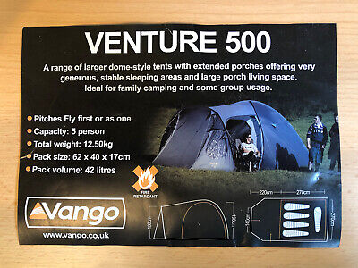 This Vango Venture 500 Tent. Fly And Groundsheet Only. No Poles Some Pegs 4 Or 5 Man may be available on eBay
