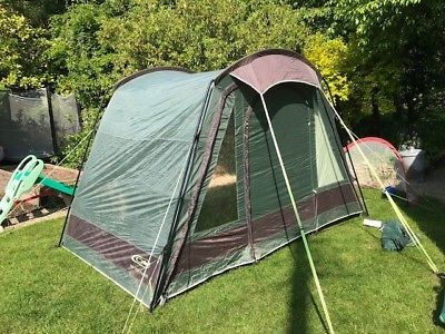 This auction is for a used Gelert Horizon 6 & 8 Tent Porch in green and is in good well used condition. It is designed to fit with most 6-8 man side door tunnel hoop tents (the kind with five hoops with the largest in the middle). The front can be zipped off for warmer days and the curtains held back.Frame can self supporting with guys as shown in photos, rear section then goes over top of tent and guys down on opposite side – 4th photo shows the fabric at back that goes over the top.We used it with our Wynnster Raven 8 tent which I’m selling in a separate auction.This porch is ideal for longer holidays when you want more space – we used it as a kitchen area and storage for chairs, bodyboards etc.Buyer to collect, cash on collection please.