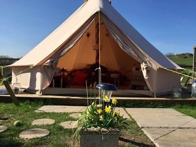 This is a one year old SoulPad Hybrid-5000 Bell tent. Please see the photographs for condition. It was washed, repaired and reproofed at the end of last season, We have shown where there are several small holes that have been repaired. It also has a 10cm (approx) hole in the ground sheet which we cut out to enable our main pole to be inserted for extra stability, with it being up all season. This can be taped & the original metal pole will be sold with the tent. We sleep 4 persons with a king size bed and sofa bed but it will sleep up to 8 persons on the ground. (furnishings not included). The front zip needs some attention & the groundsheet will be cleaned this photo was taken when the coir matting base had just been removed & this is the debris underneath! The front door area has some mud on it due to our dog trying to visit the guests! & there are some muddy patches from when it was taken down. We paid £625 for this tent last spring.it has been used for one season on our small glamping site. This is a lovely quality tent, below are the dimensions and information provided on the soul-pad websiteCollection in person due to weight but we are happy to discuss postage at the buyers own expense and responsibilityCotton canvas fly with zipped-in groundsheet (ZIG), 5m diameter, 1.75m entrance, 3m at centre, weight 32.3kg. This SoulPad® combines some of the luxury and practicality of the SoulPad-ease™ tents with all of the fun and drama of the SoulPad-lites™The zip is protected and concealed by a canvas storm flap that runs its length to ensure zero penetration of water.Luxurious, extra thick (540g/m2) groundsheet which is 100% waterproof.This groundsheet is ‘bath tub’ style, so if you find yourself at a festival camping in a field-turned-lake, you know it’s not going to let the water in. If you’re lucky enough to be at a sunny festival and in need of some cool, breezy shade, simply unzip the groundsheet and roll the walls up. Perfect if you need to catch some Zzz’s on a hot day. There are four zipped windows on this SoulPad® and four vents at the top of the bell, all with mosquito mesh fitted.